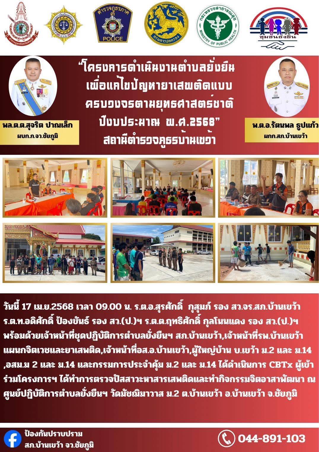 พ.ต.อ.รัตนพล ธูปแก้ว ผกก.สภ.บ้านเขว้า ดำเนินงานโครงการดำเนินงานตำบลยั่งยืนเพื่อแก้ไขปัญหายาเสพติดแบบครบวงจรตามยุทธศาสตร์ชาติ ปีงบประมาณ 2568