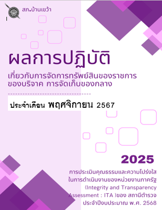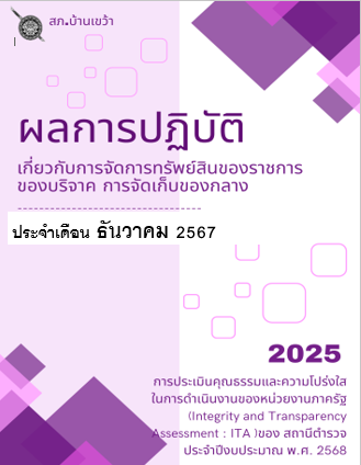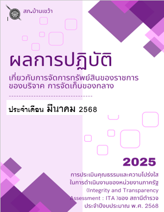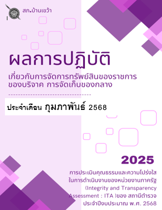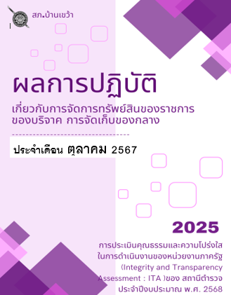 ผลการปฏิบัติเกี่ยวกับการจัดการทรัพย์สินของราชการของบริจาค การจัดเก็บของกลาง แยกเป็นรายเดือน