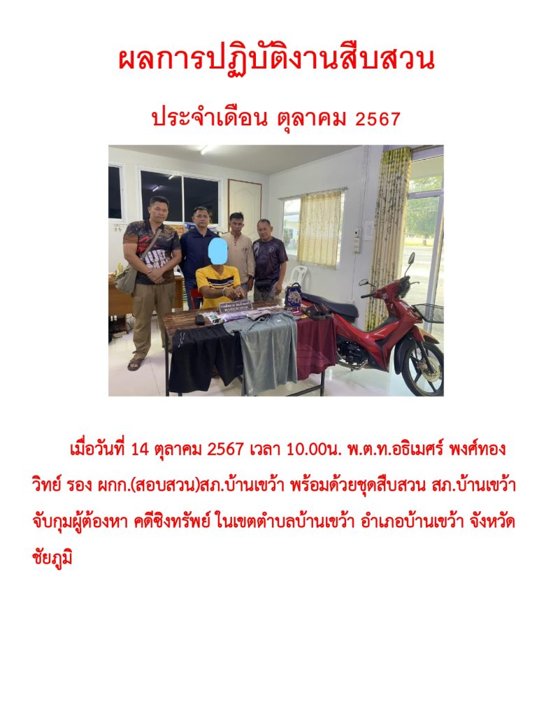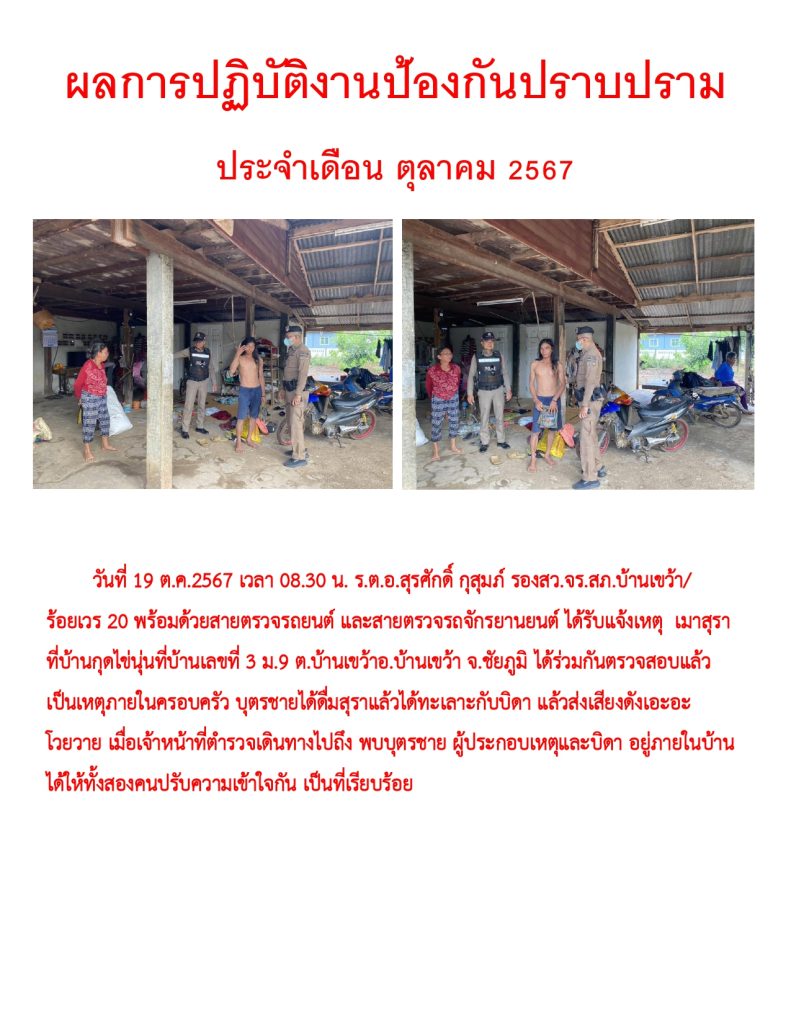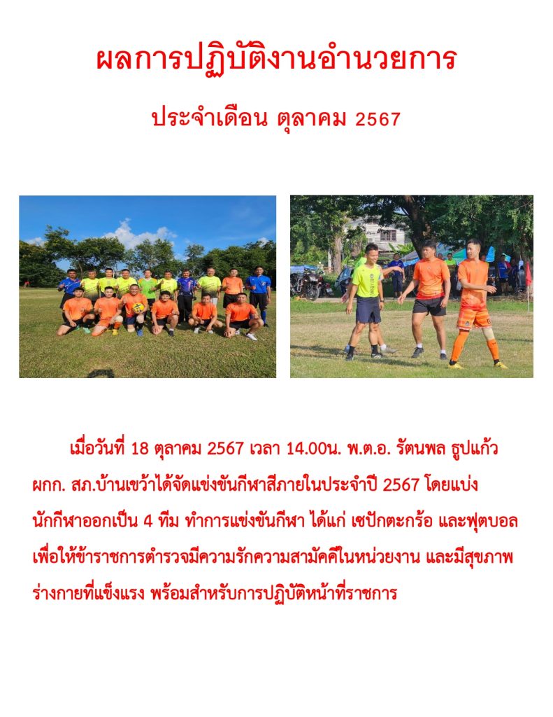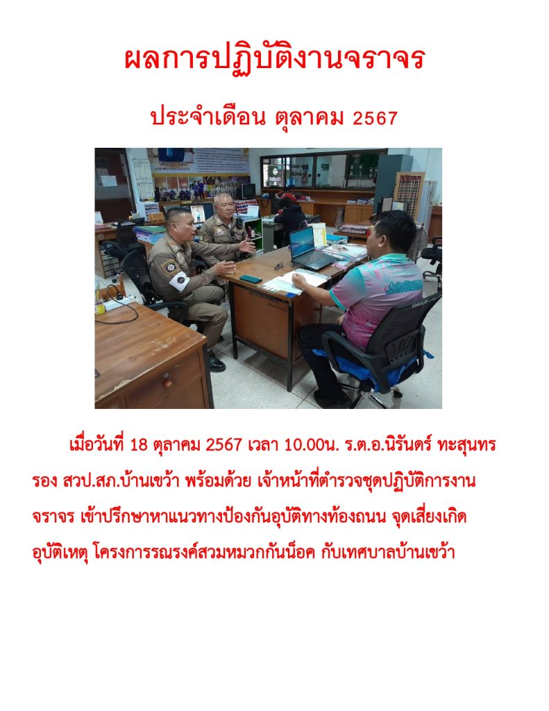 ผลการปฏิบัติราชการประจำเดือน ตุลาคม 2567