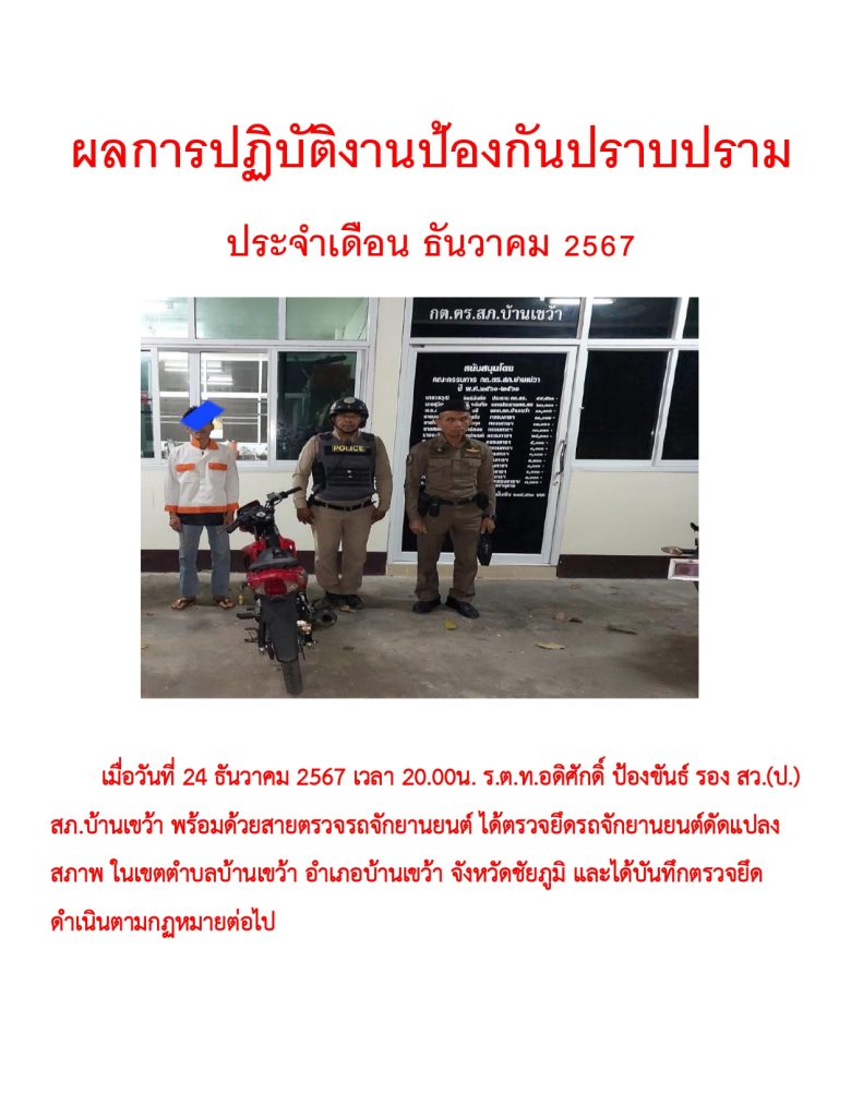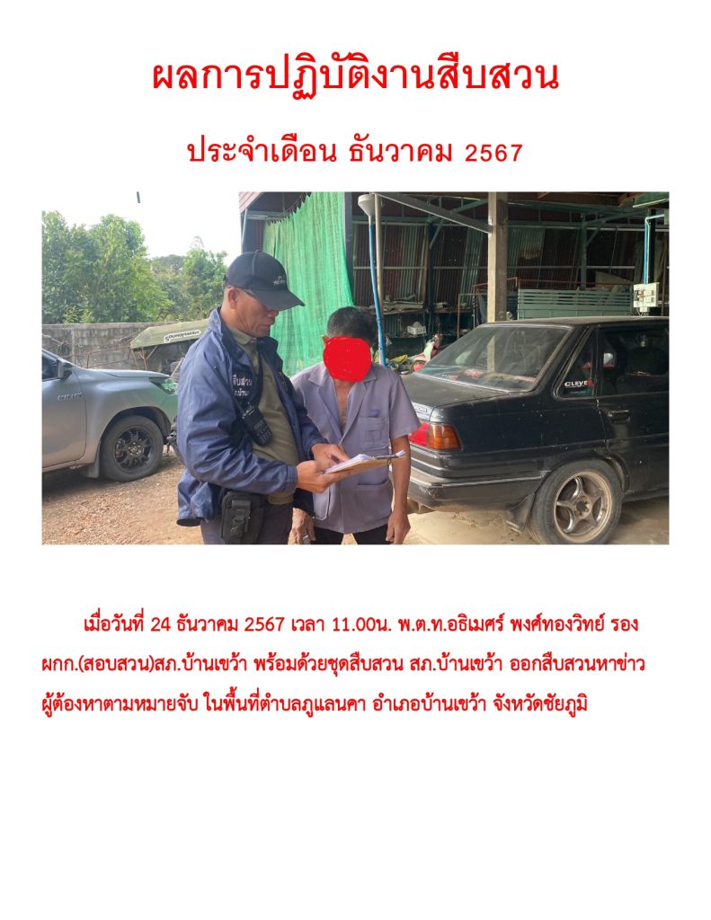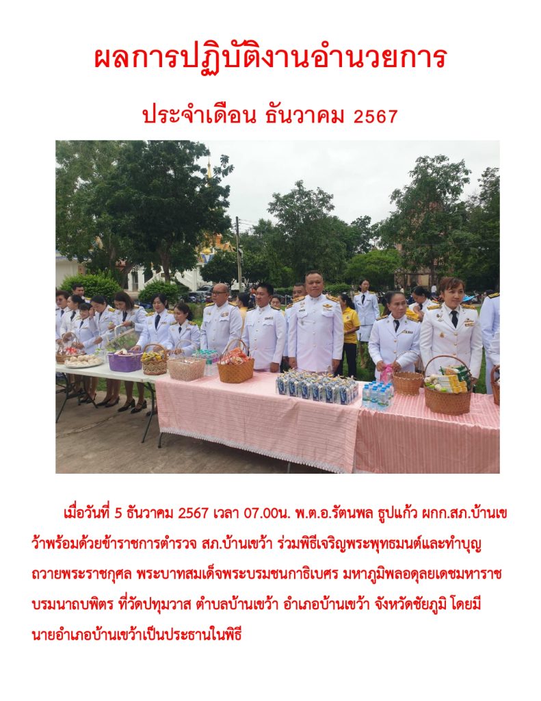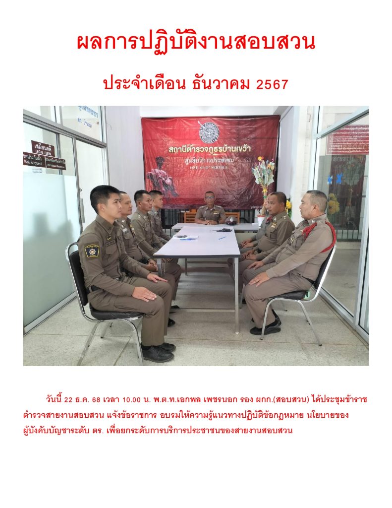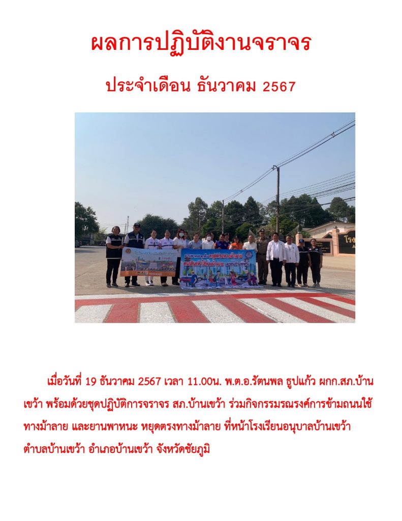ผลการปฏิบัติราชการ ประจำเดือน ธันวาคม 2567