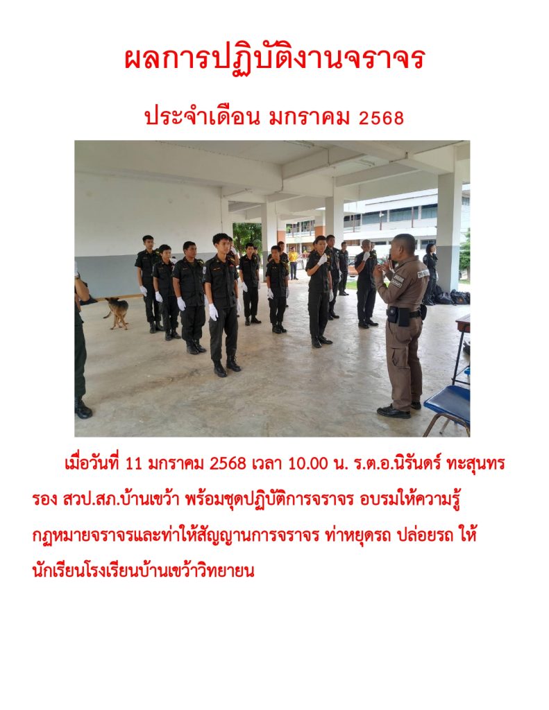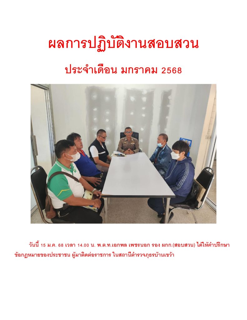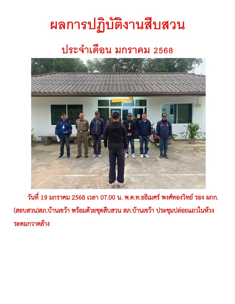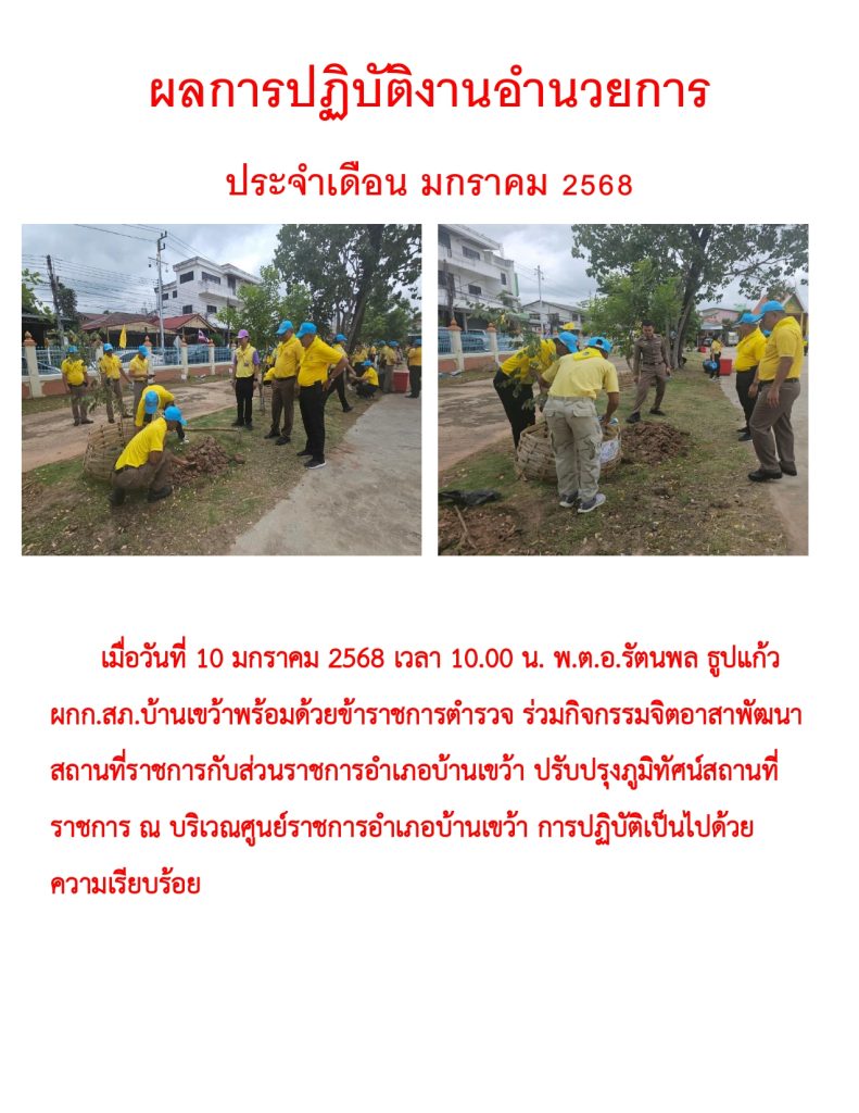 ผลการปฏิบัติราชการ ประจำเดือน มกราคม 2568