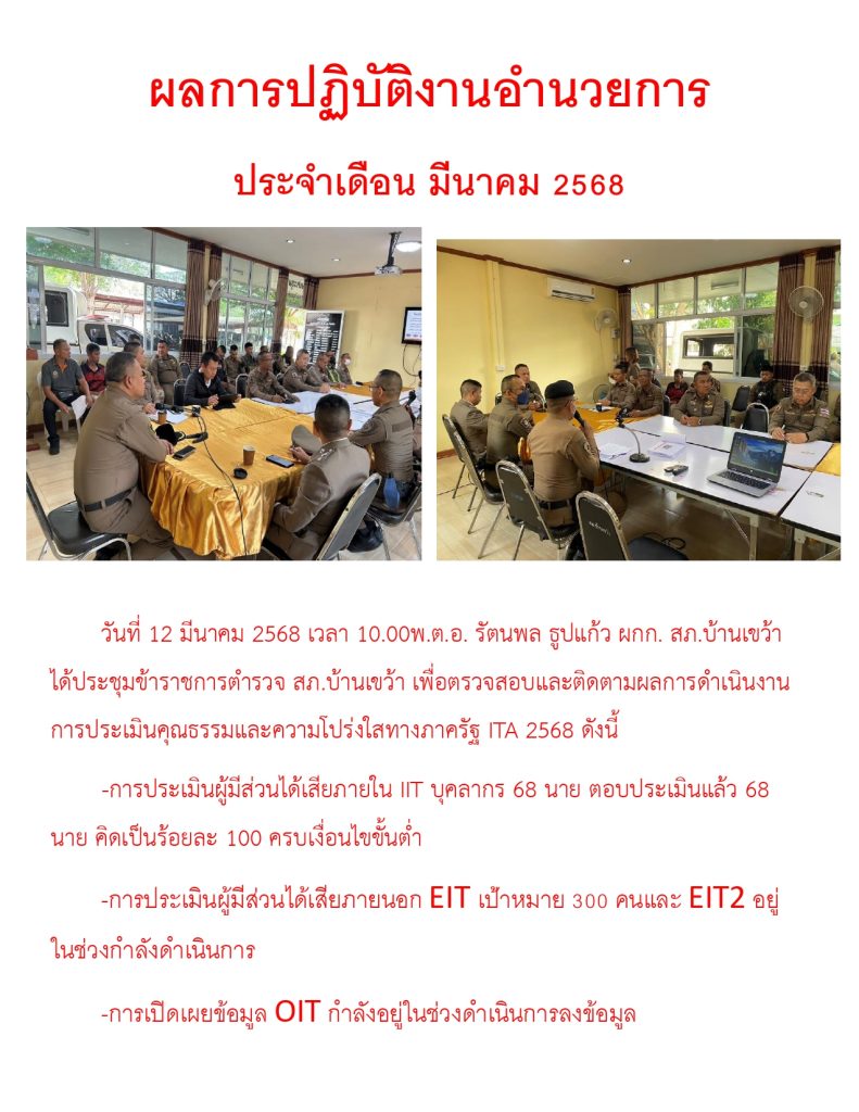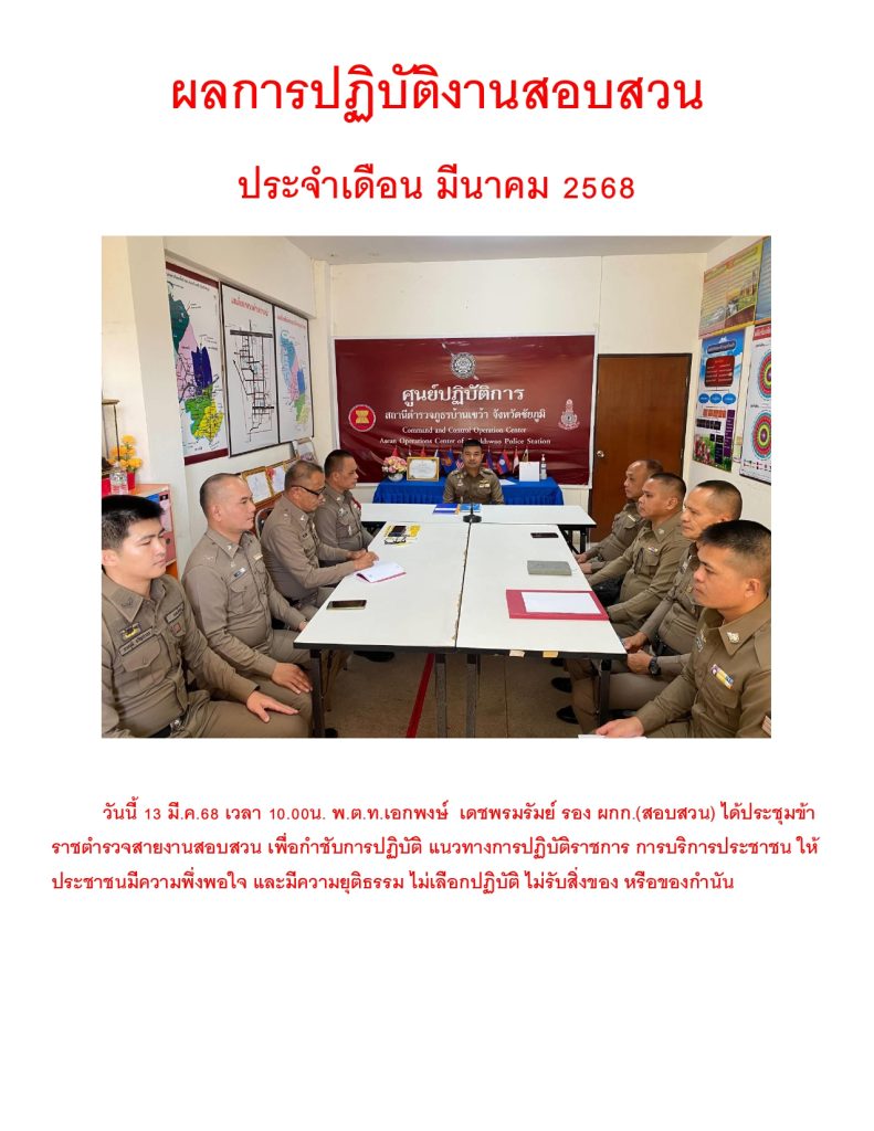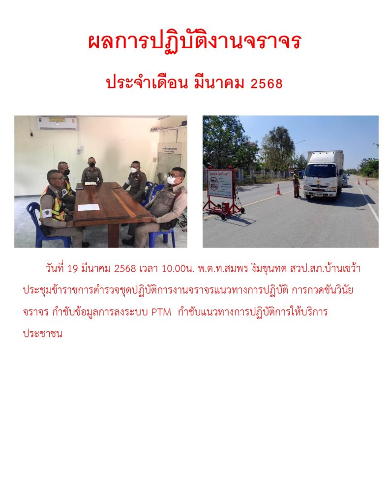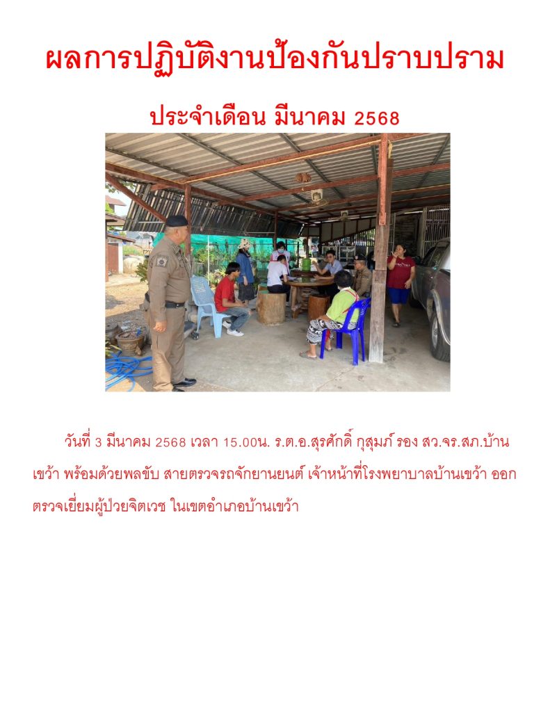 ผลการปฏิบัติราชการ ประจำเดือน มีนาคม 2568