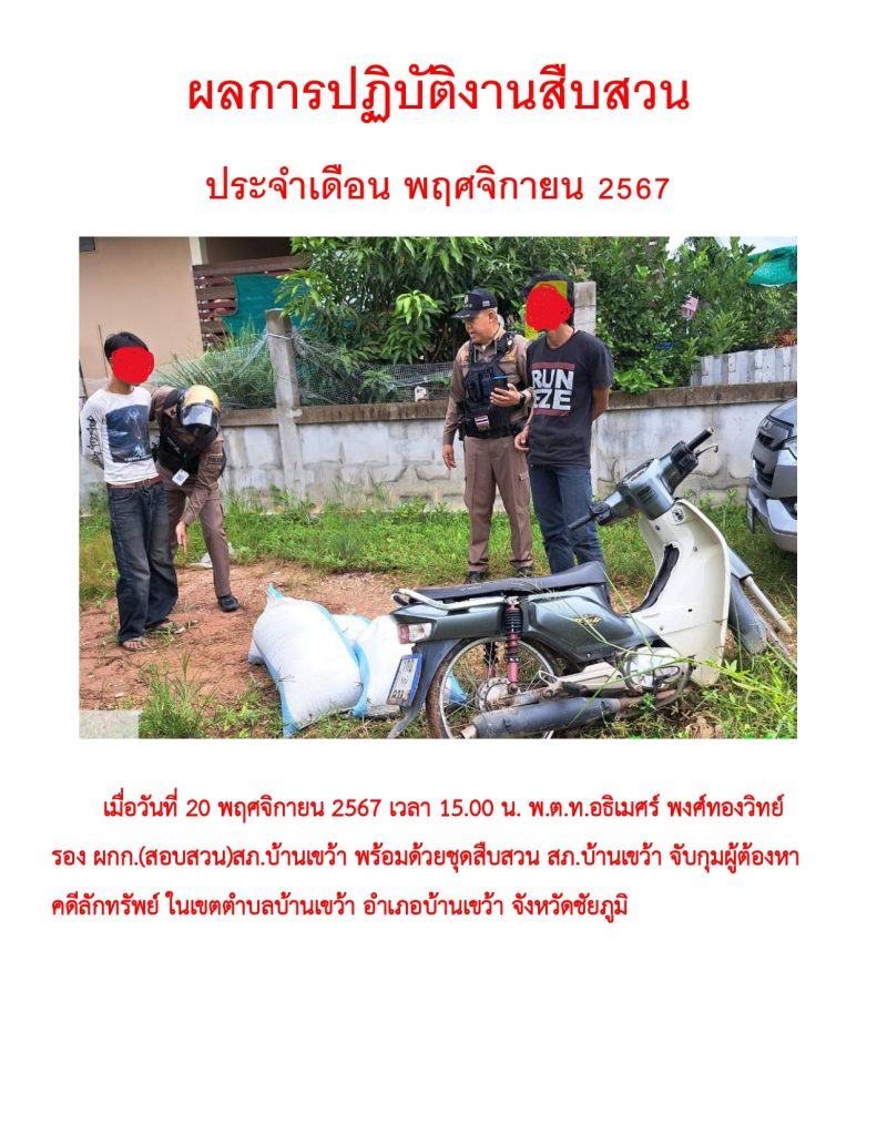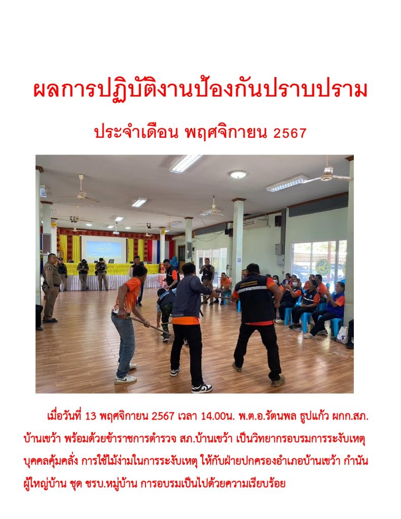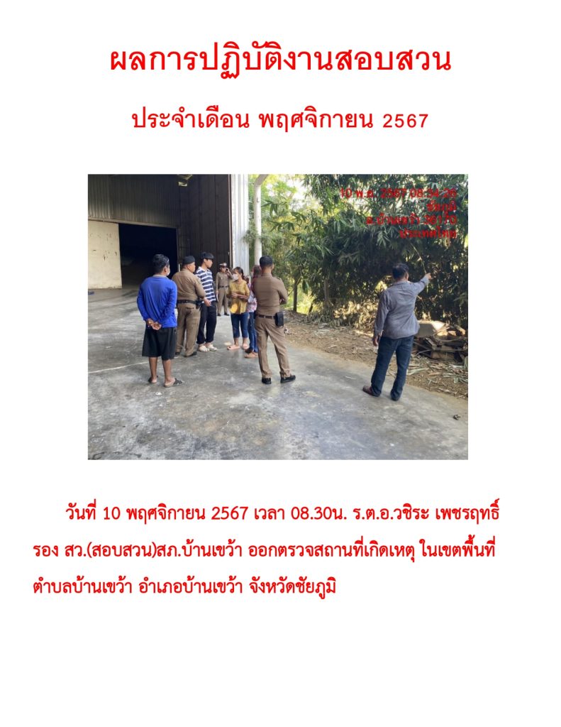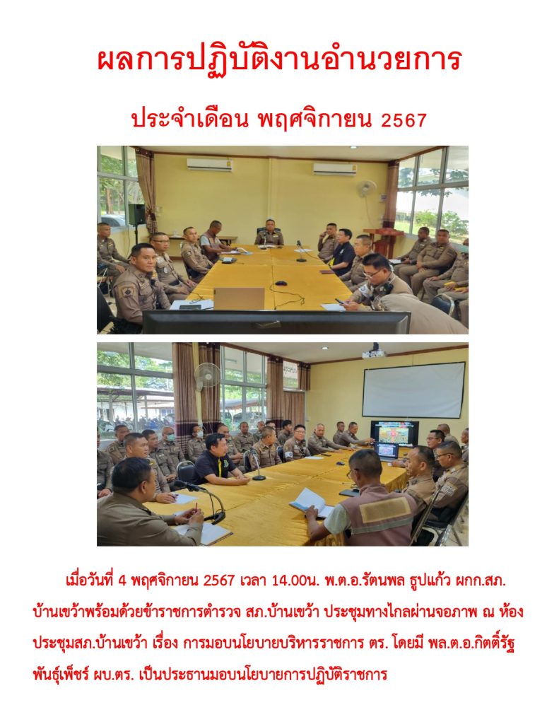 ผลการปฏิบัติราชการ ประจำเดือน พฤศจิกายน 2567