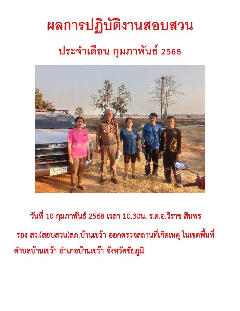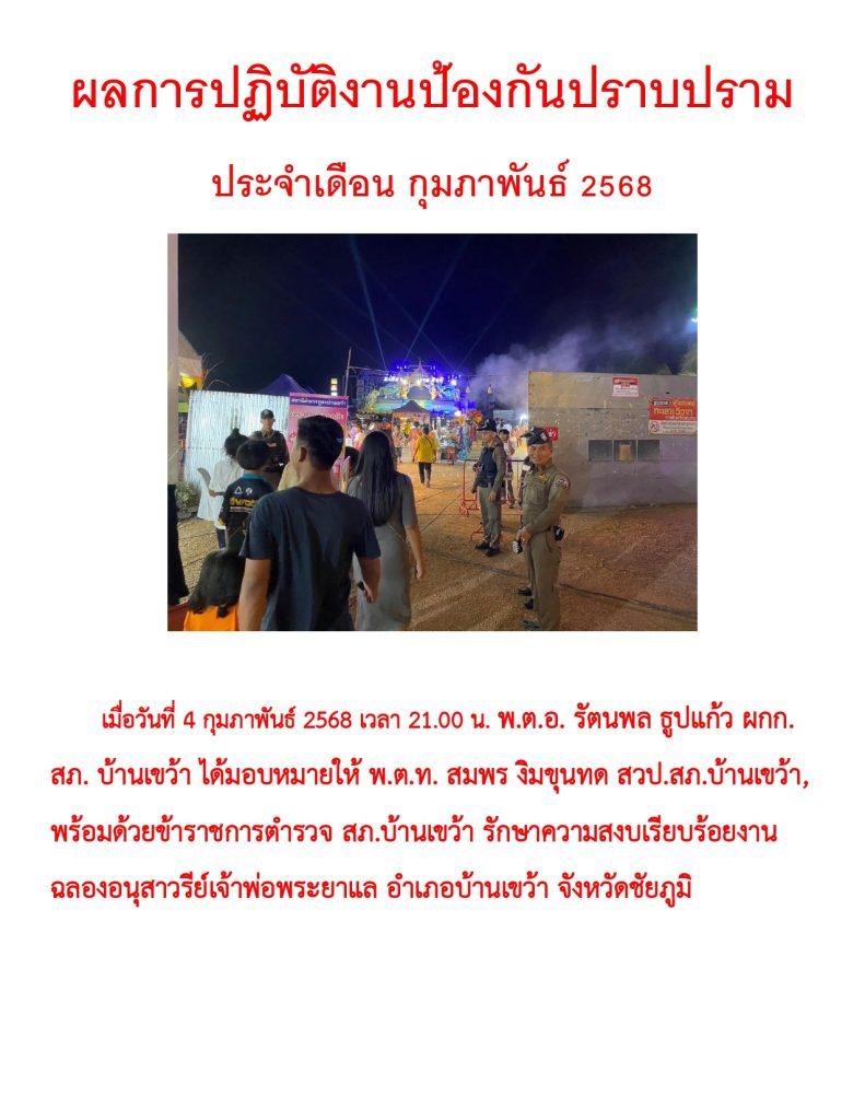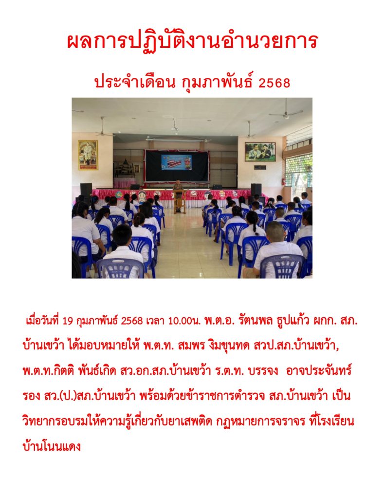 ผลการปฏิบัติราชการ ประจำเดือน กุมภาพันธ์ 2568