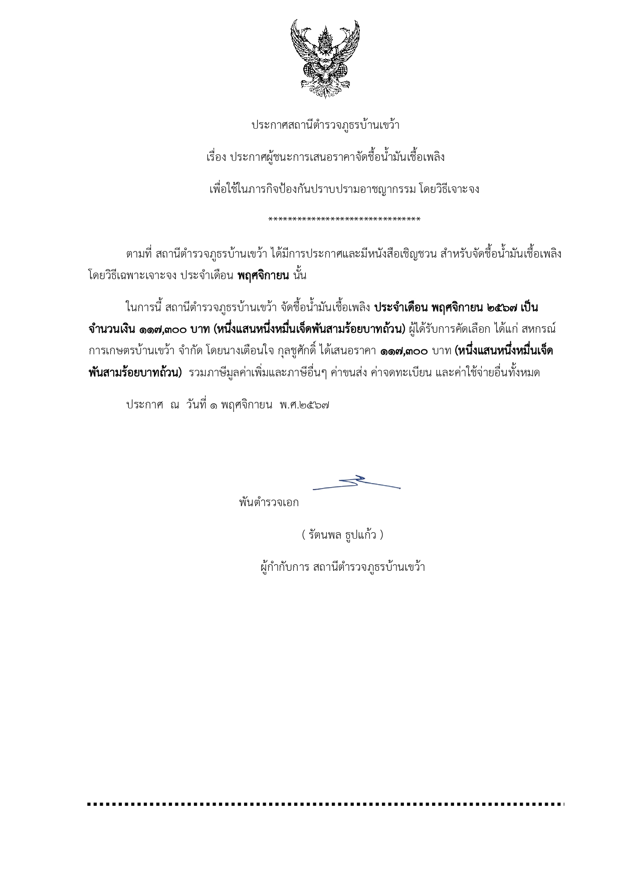 ประกาศจัดชื้อจัดจ้างประจำเดือน พฤศจิกายน 2567