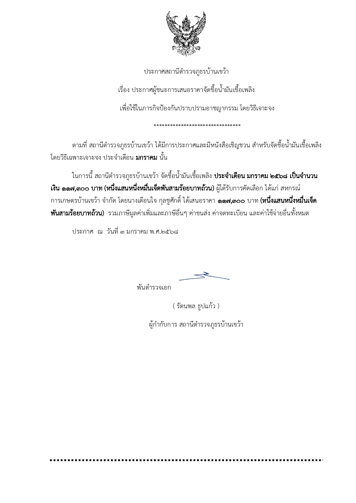 ประกาศจัดชื้อจัดจ้างประจำเดือน มกราคม 2568