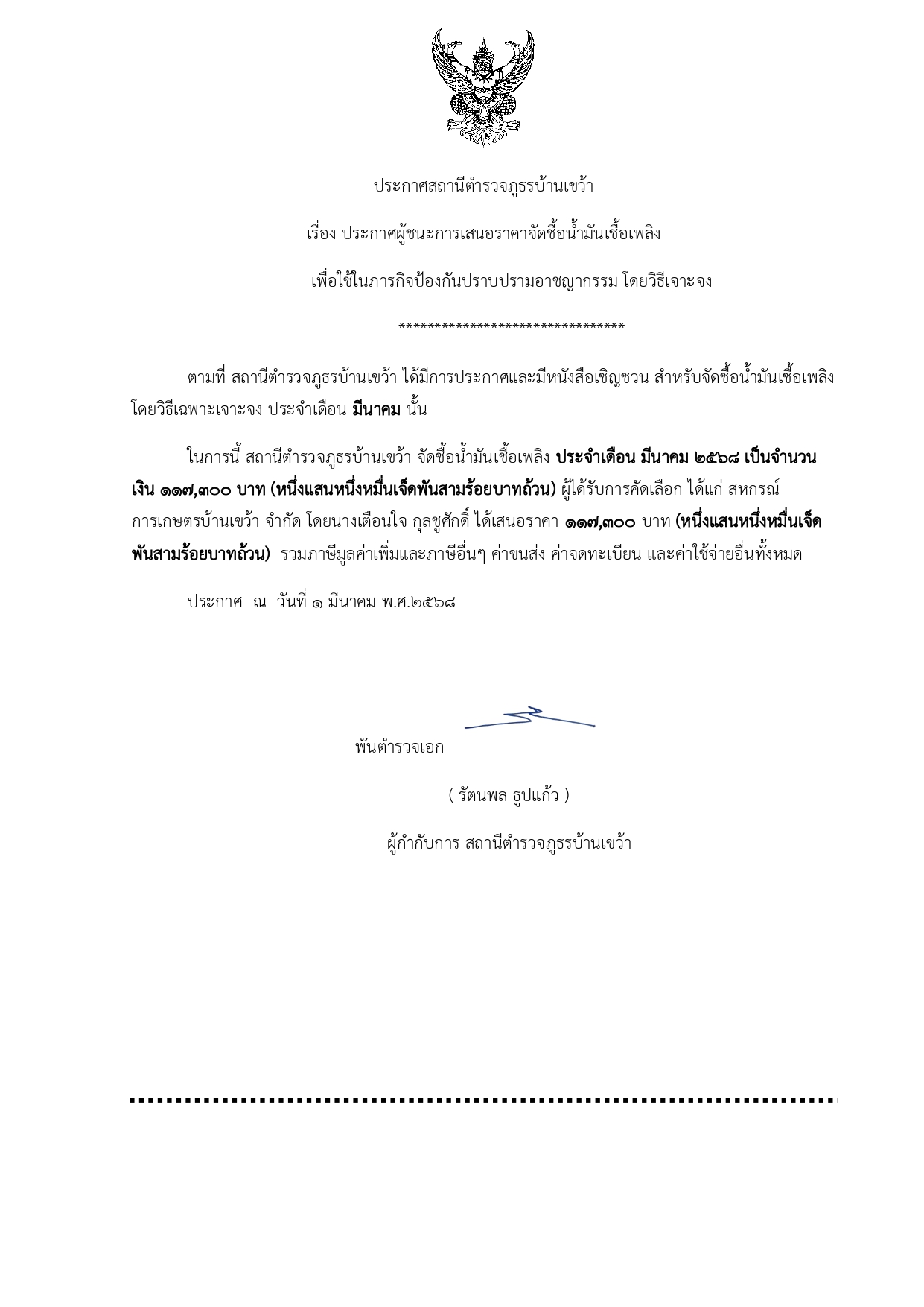 ประกาศจัดชื้อจัดจ้างประจำเดือน มีนาคม 2568